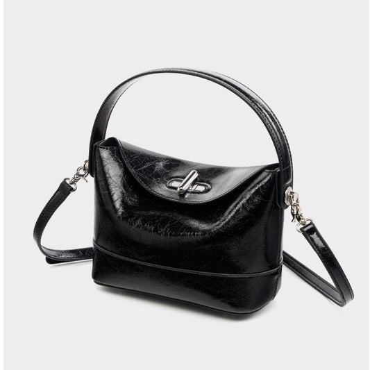 Women’s Genuine Leather Mini Bucket Shoulder Bag – Chic Turn-Lock Crossbody