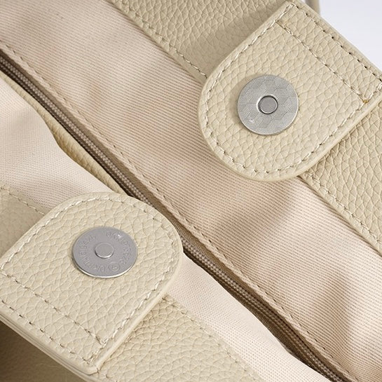 This versatile women's parent-child tote, crafted from top-grain cowhide, is a large horizontal square style with neat topstitching. Its medium-soft texture and magnetic closure open to a polyester-cotton lined interior, featuring a document pocket and a zippered compartment. With ample capacity, it blends functionality and style—ideal for daily use, merging genuine leather durability with practical design for all occasions.