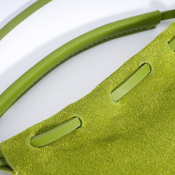 This vintage cloud bag, crafted from two-layer frosted cowhide, boasts a mini shell silhouette with charming pleats and neat topstitching. The drawstring closure opens to a polyester-cotton lined interior, blending style with functionality. With medium hardness to retain shape, it works as a handbag or crossbody. Perfect for daily outings, it merges retro frosted texture with trendy cloud-inspired design, adding a unique flair to any look.