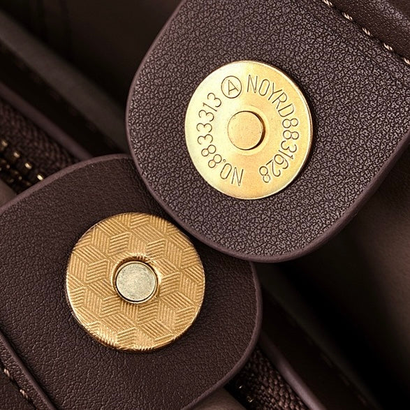 This Women's Amber Suede Leather Bucket Satchel is crafted from premium genuine suede (frosted leather) in rich coffee brown, embodying urban minimalist charm. It’s a medium-sized vertical square design with medium stiffness—versatile for shoulder, crossbody, or hand-carry wear. Equipped with a convenient magnetic snap closure, the cotton-polyester lined interior features a zippered secret pocket and a phone pouch for organized storage. The soft suede texture adds subtle luxury, while the clean lines fit seamlessly into urban lifestyles. Perfect for work commutes or daily outings, this multi-way bag balances practicality with understated elegance, elevating your everyday look effortlessly.