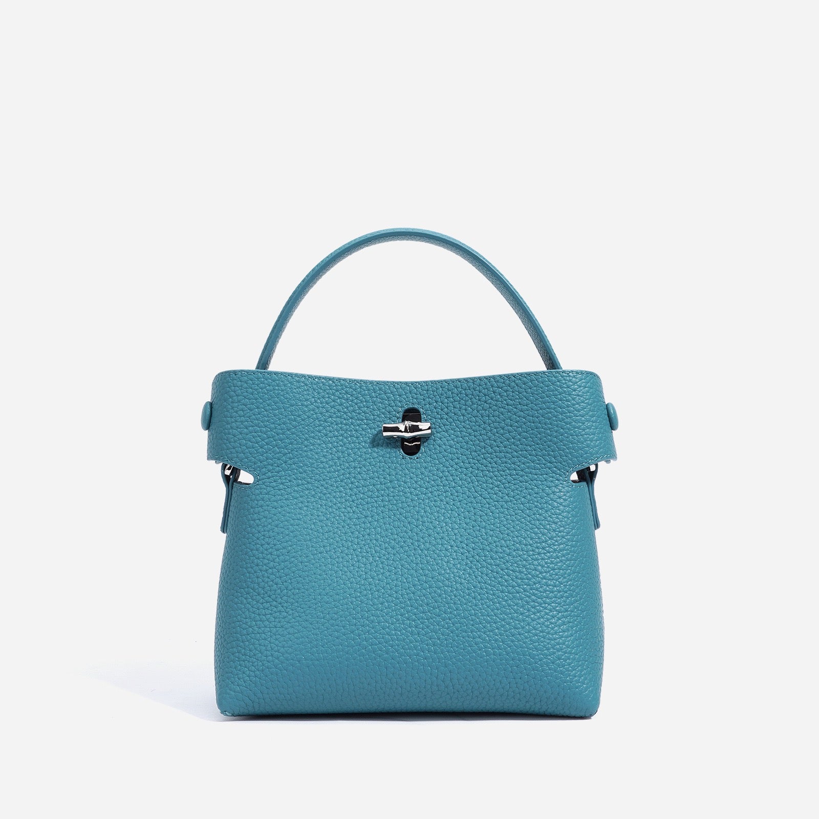 This Urban Minimalist bucket bag in medium size is crafted from top-grain cowhide, featuring bamboo handles and classic topstitching. The vertical square silhouette with a lock closure opens to a flannel-lined interior, including a phone slot and document pocket. With medium-soft hardness and dual shoulder straps, it balances daily practicality and elegant design, perfect for urban commutes and versatile styling.