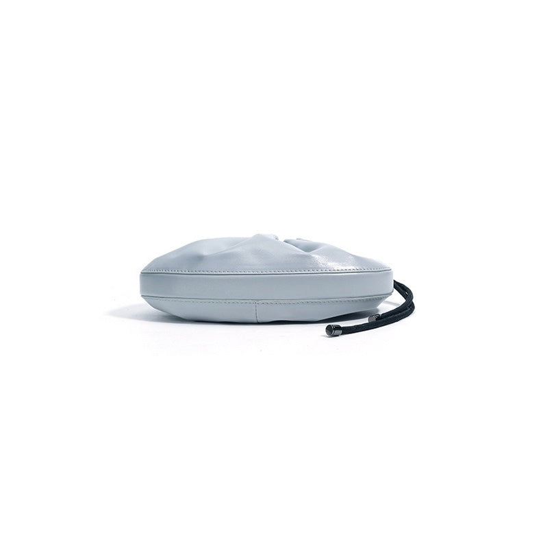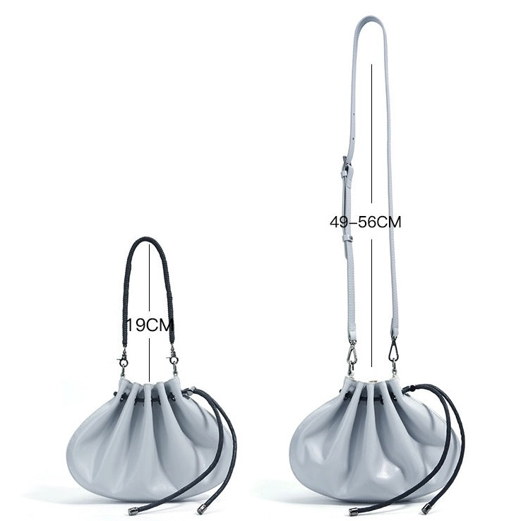 This niche sheepskin bag, a small shell-style design, blends premium craftsmanship with trendy details like pleats and topstitching. The drawstring closure opens to a polyester-cotton lined interior, featuring a zippered pocket and document slot. With medium hardness and dual straps, it works as a handbag or crossbody, perfect for daily outings—marrying functional elegance with unique style.