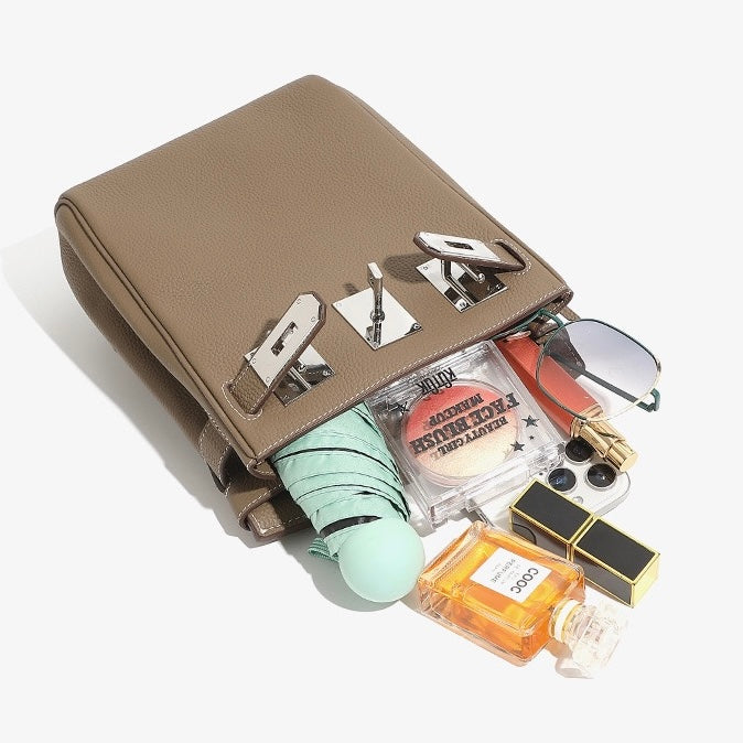 Crafted from premium top-grain cowhide, this medium-sized Top Grain Cowhide Crossbody Chest Bag Unisex features a trendy chest bag style with a vertical square shape. Its sleek solid color design adds versatile appeal, while the buckle closure ensures secure use. The synthetic leather lining includes a dedicated document pocket for organized storage. With medium hardness, it balances durability and comfort, perfect for unisex daily wear or outdoor activities.