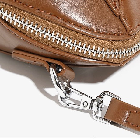 Crafted from premium top-grain cowhide, this small geometric bag features a vintage patchwork design and neat topstitching. Shaped like a pillow with medium hardness, it works as both a shoulder and crossbody style. The fabric-lined interior includes a secure zippered secret pocket, while the smooth zipper closure adds functionality. Blending timeless elegance with versatile style, it’s a chic accessory for elevating any outfit effortlessly.