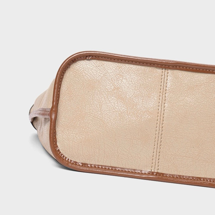 This Women's Vintage Genuine Leather Tote with Pouch blends functionality with retro charm, crafted from premium genuine leather with a stylish vintage finish. Shaped like a practical market basket (medium-sized, soft-structured), it features a drawstring closure for easy access and secure storage. Lined with durable cotton-polyester fabric, the interior includes a zippered secret pocket to keep small essentials organized. With ample space for daily items, this tote balances vintage aesthetics with everyday practicality—perfect for errands, outings, or casual commutes, adding a nostalgic touch to any outfit.